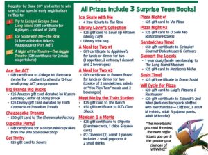 Emma Clark Library would like to thank the following businesses that support the Library and our community by donating gift cards and merchandise for Kids, Teens & Tweens, and Adult Summer Reading Challenge raffle prizes:
